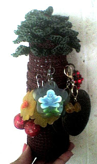 Em inglês há uma palavra para designar linha de plástico - PLARN - foi criada com o "PL" de "plastic" + "arn" de "yarn" (que significa linha). Em português, que eu saiba, PLARN ainda não tem tradução, mas decidí não esperar pelos dicionários e chamar a minha linha de plástico de PLASTINHA.Os botões são bolinhas crochetadas em linha e preenchidas com restinhos dos sacos de plástico.